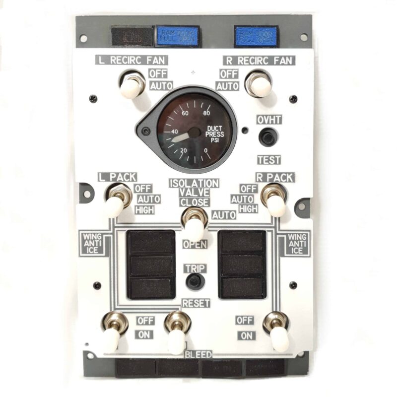 Ce panneau de conduit d'avion n'est pas seulement un affichage ; c'est un composant de cockpit de simulateur entièrement fonctionnel. Avec un rétroéclairage blanc chaud sur les boutons, les voyants lumineux et les indicateurs de pression des conduits, il offre une visibilité claire dans toutes les conditions d'éclairage, améliorant à la fois l'expérience de formation et d'enthousiaste. L'éclairage fonctionne sur une alimentation 12 volts dédiée, assurant un éclairage stable et fiable.
