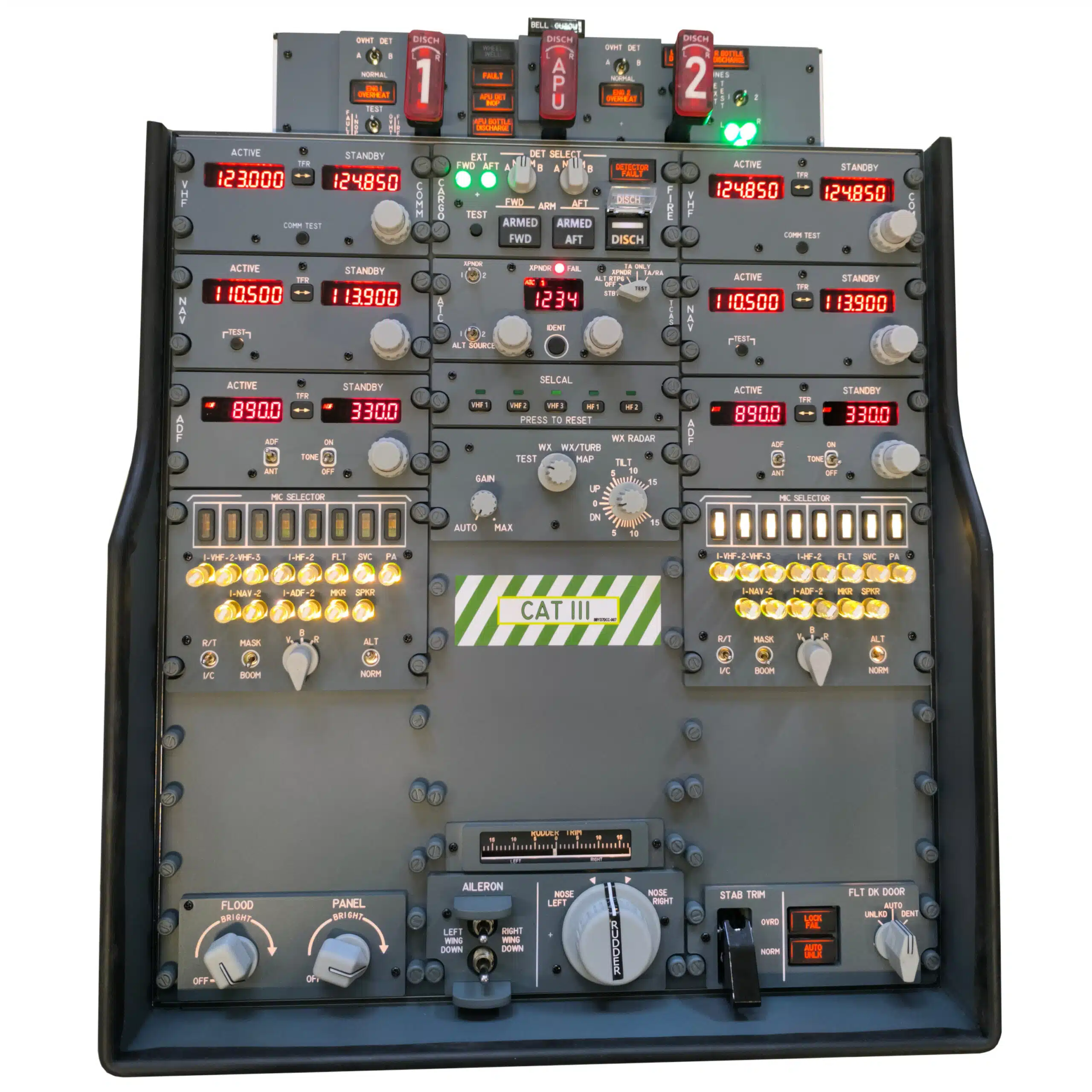 This set includes the front and back panels, all annunciators, knobs, and switch guards.