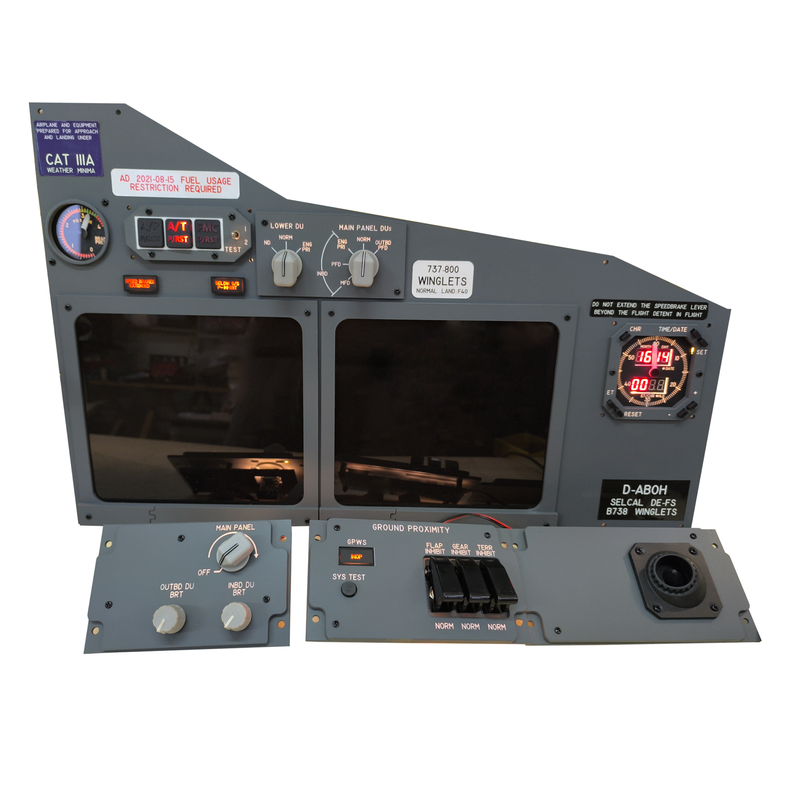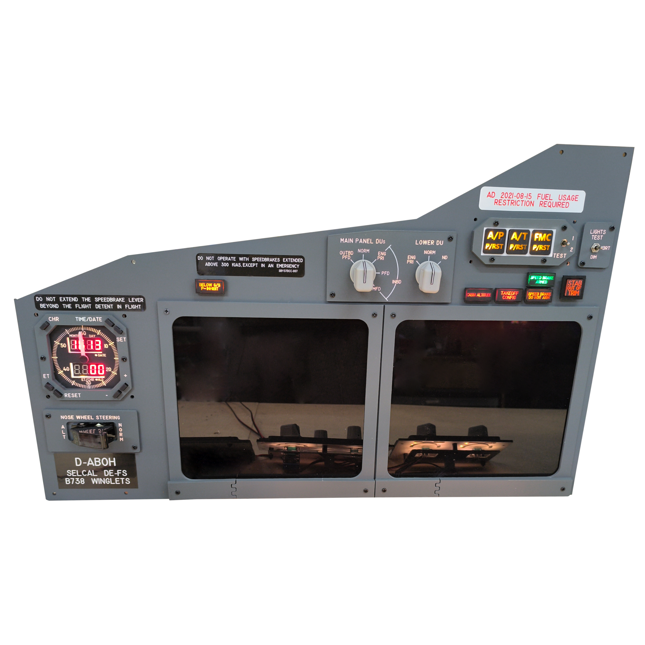 Ce n'est pas seulement un panneau, c'est votre passerelle vers une expérience de vol fidèle à la réalité. L'éclairage de fond du panneau utilise des LED blanc chaud, améliorant la visibilité et l'immersion dans le poste de pilotage lors des vols de nuit. Le chronomètre a un mécanisme entraîné par un moteur pas à pas avec un affichage à sept segments rouge rétroéclairé en blanc chaud, tandis que les volets, le manomètre de pression de freinage et le stabilisateur de lacet ont un mouvement fluide entraîné par un servomoteur pour une sensation authentique. Chaque carte de circuit imprimé à l'arrière comprend un connecteur IDC affecté à chaque fonction du panneau, facilitant la configuration et le dépannage.