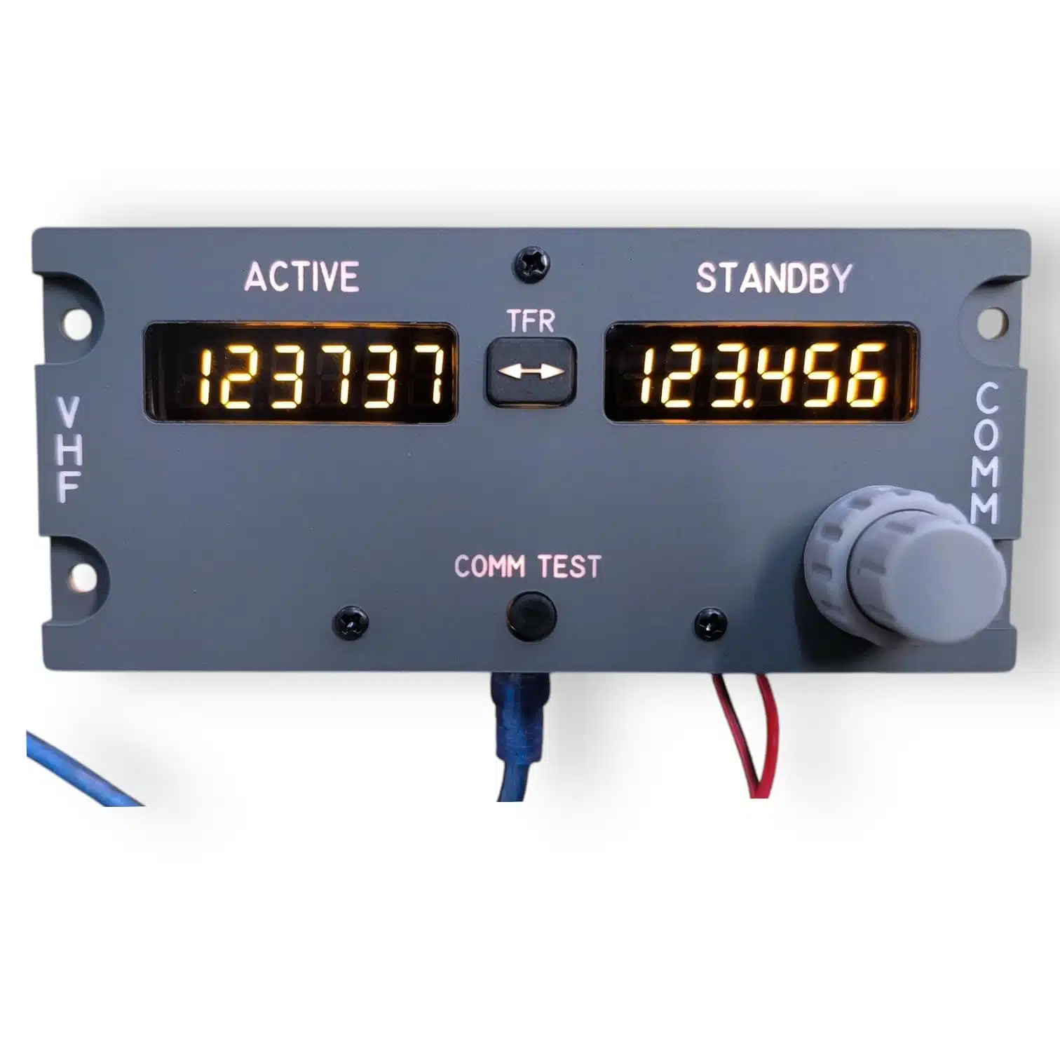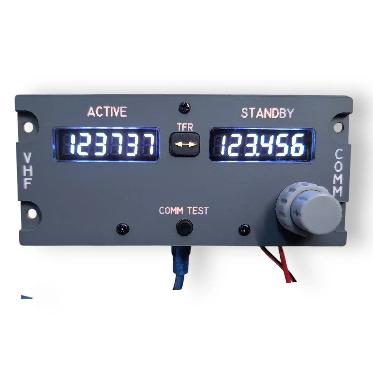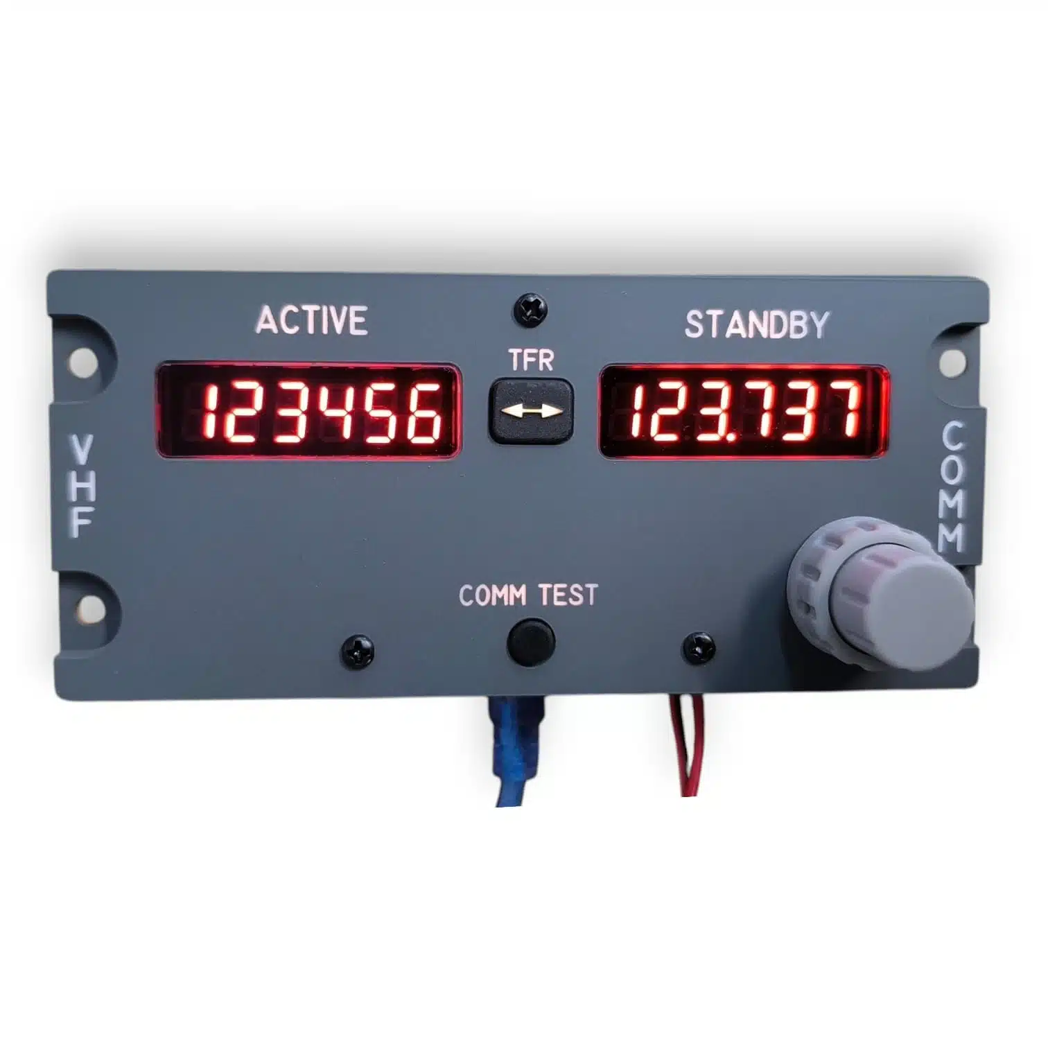 Dodając do swojego autentycznego charakteru, czerwone wyświetlacze 7-segmentowe emulują odczyty VHF prawdziwego samolotu, zapewniając ostrą, wyraźną wskazówkę w każdych warunkach oświetleniowych.